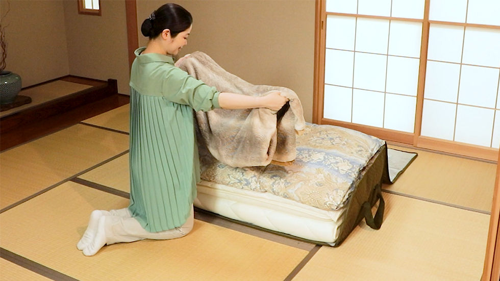 布団一式をセットでまとめられるため、急な来客でもあっちこっち探すことなく、収納袋ごと取り出してお使いいただけます。
